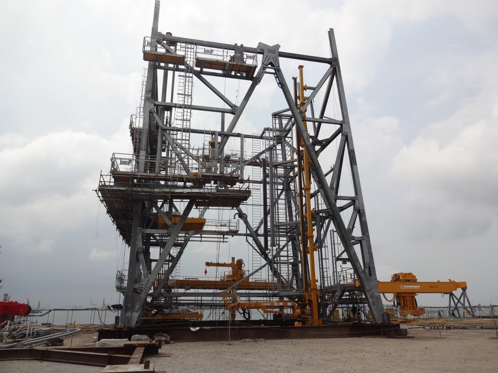 Erection of land and offshore drilling rigs, including mast assemblies, involves heavy lifting operations combined with the integration of mechanical and hydraulic systems, ensuring full operational readiness prior to delivery.