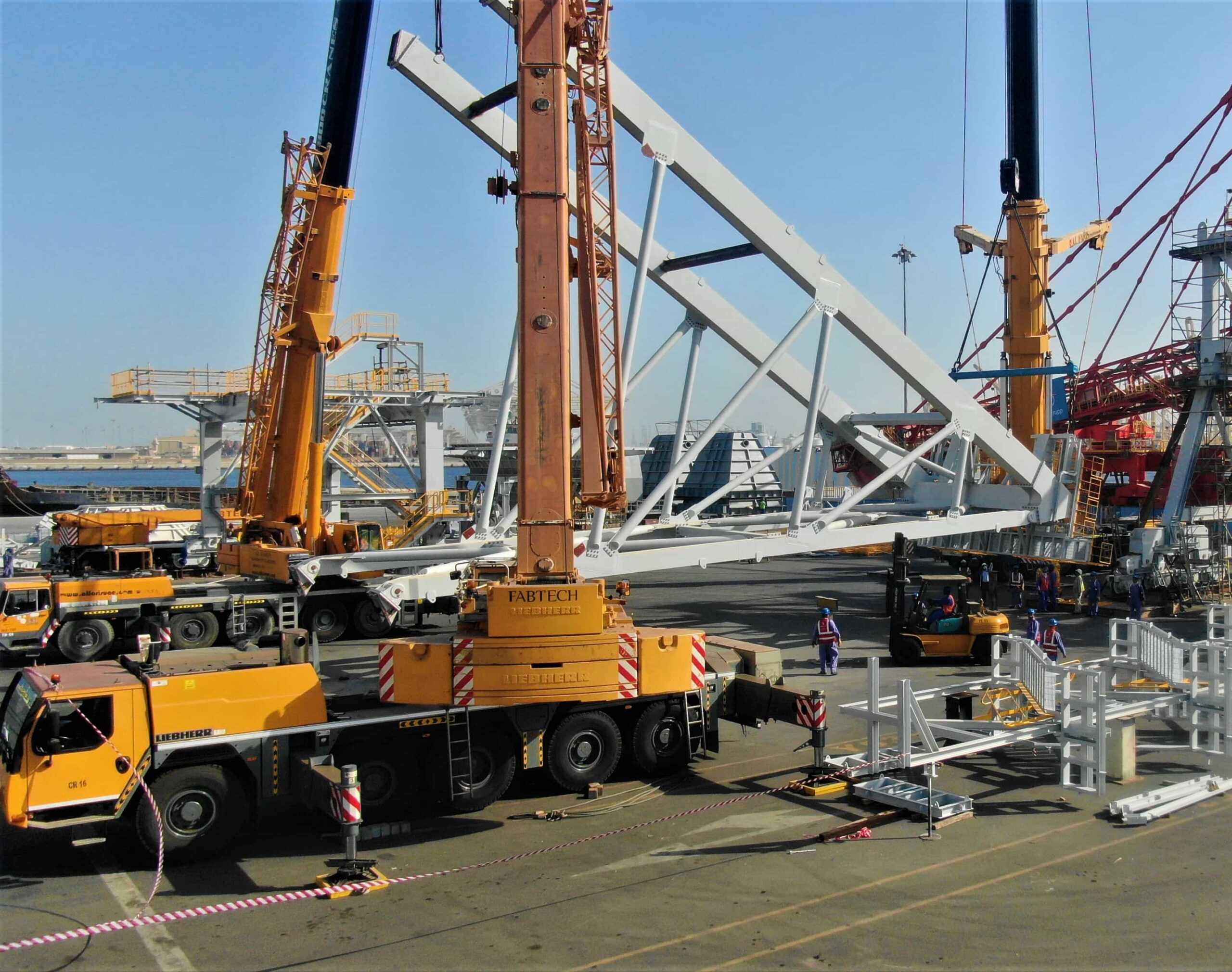 Fabtech gained a large experience in offshore jack-up systems, barges, and jacket structures, which are fabricated and erected using our specialized infrastructure and heavy cranes, with strict adherence to marine and offshore safety standards throughout the process.